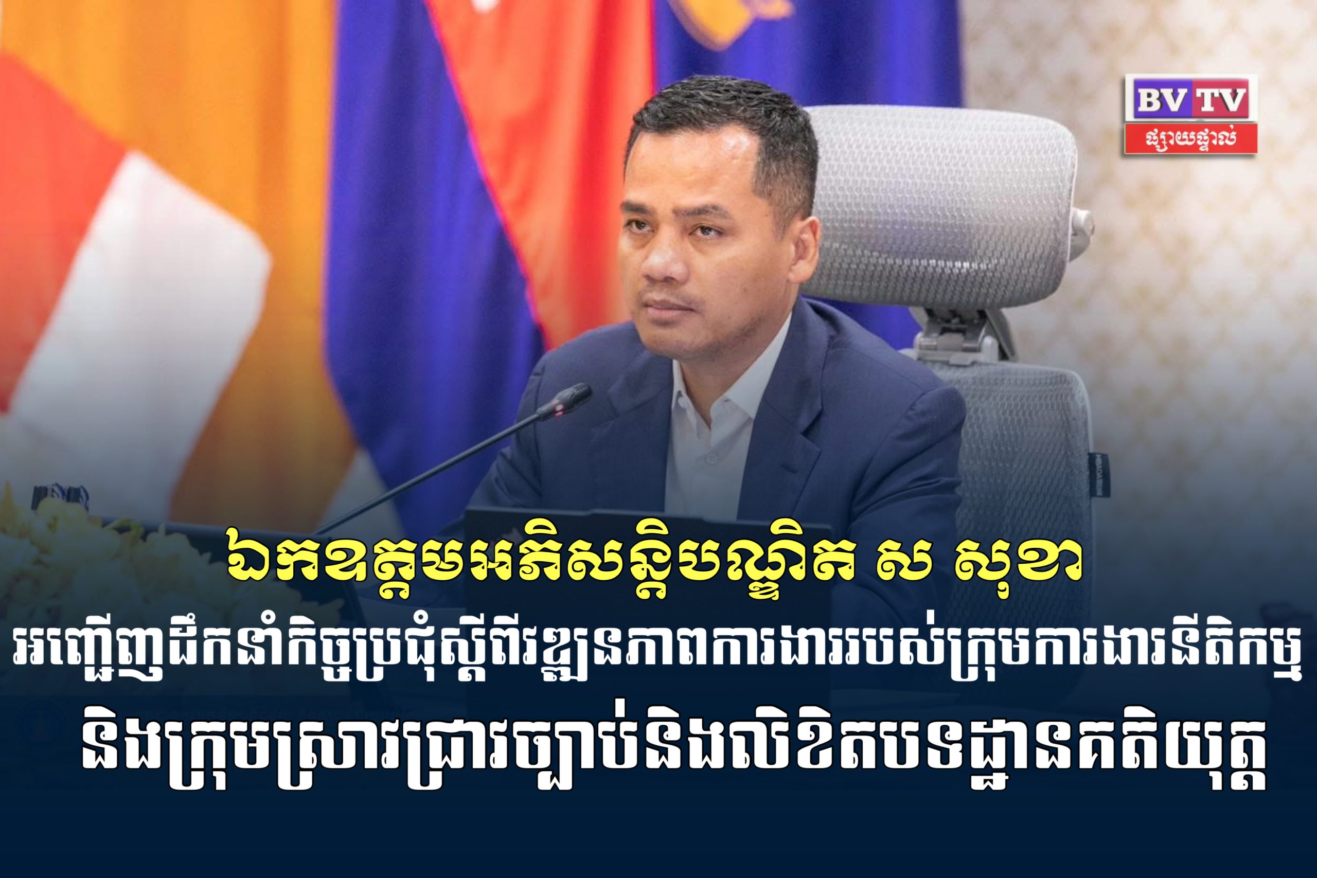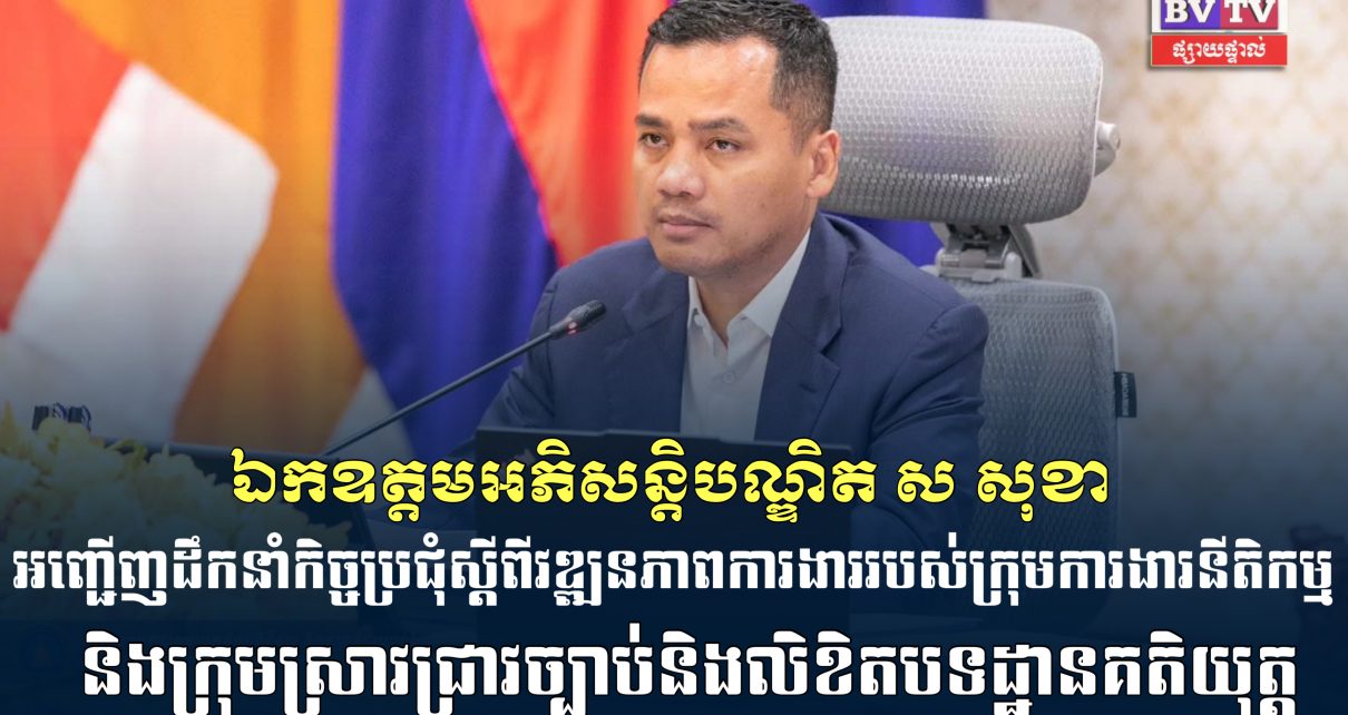 នៅរសៀលថ្ងៃទី១៦ ខែតុលា ឆ្នាំ២០២៥ នេះ ឯកឧត្តមអភិសន្តិបណ្ឌិត ស សុខា ឧបនាយករដ្ឋមន្ត្រី រដ្ឋមន្ត្រីក្រសួងមហាផ្ទៃ អញ្ជើញដឹកនាំកិច្ចប្រជុំស្តីពីវឌ្ឍនភាពការងាររបស់ក្រុមការងារនីតិកម្ម និងក្រុមស្រាវជ្រាវច្បាប់និងលិខិតបទដ្ឋានគតិយុត្ត នៅសាលប្រជុំទីស្តីការក្រសួងមហាផ្ទៃ។