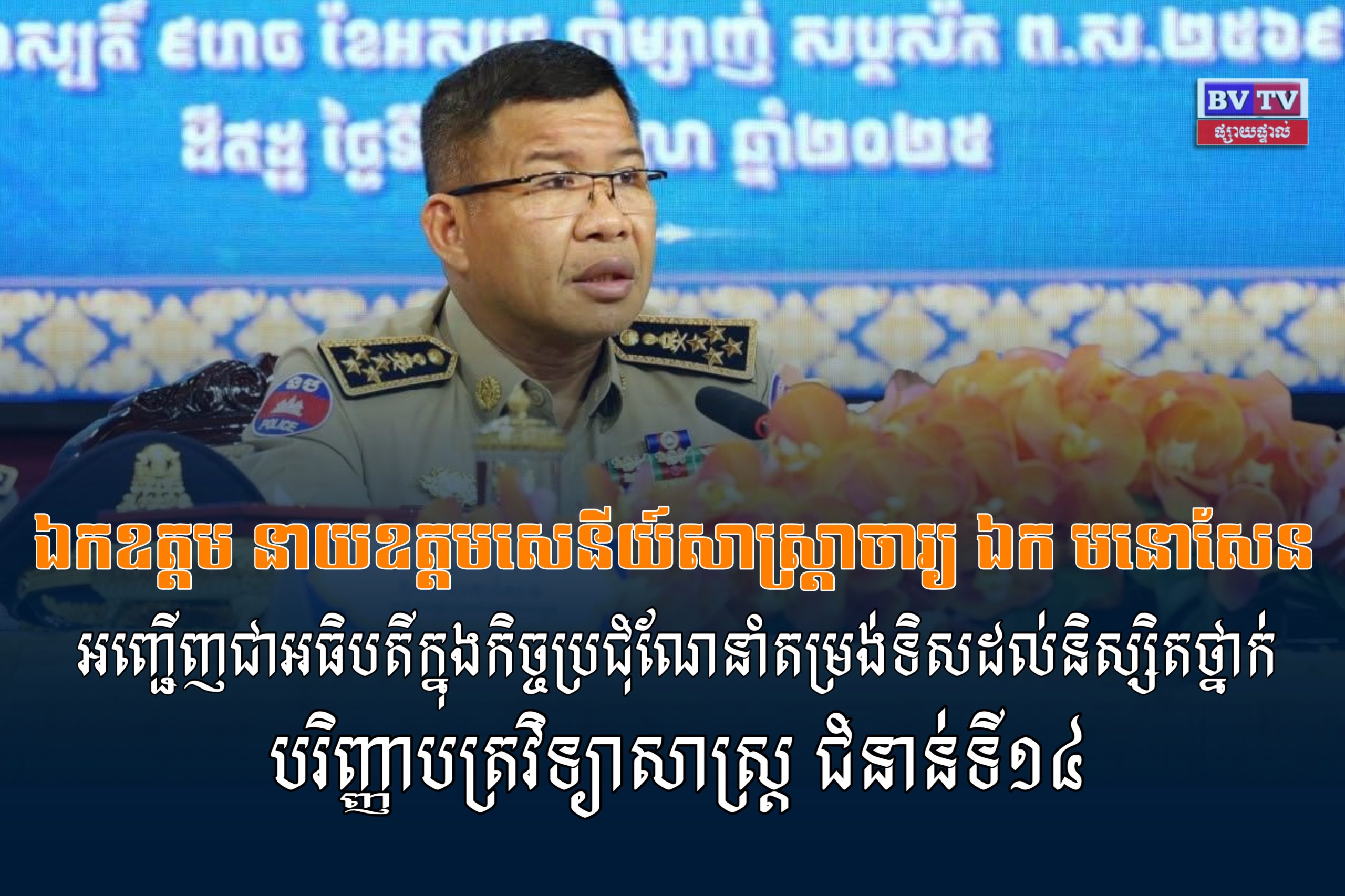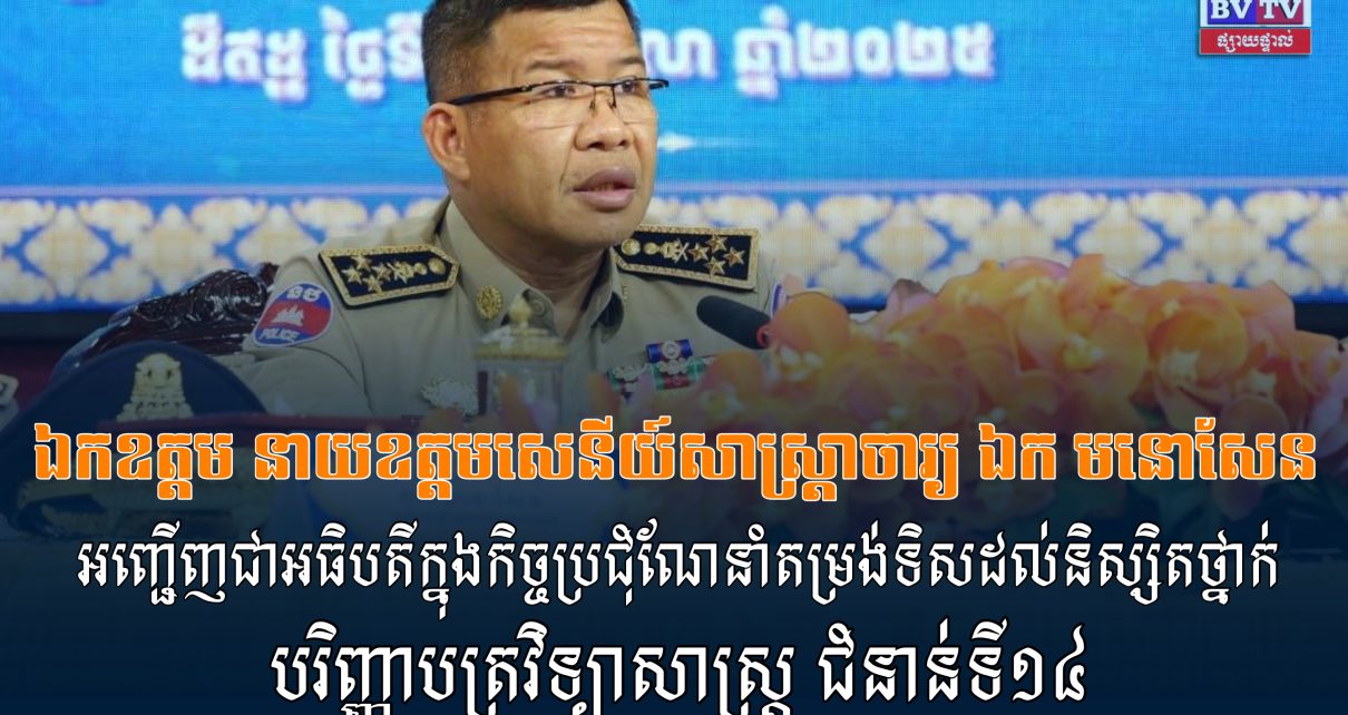 នៅរសៀលថ្ងៃព្រហស្បតិ៍ ទី១៦ ខែតុលា ឆ្នាំ២០២៥ ឯកឧត្តម នាយឧត្តមសេនីយ៍សាស្ត្រាចារ្យ ឯក មនោសែន ប្រធានបណ្ឌិត្យសភានគរបាលកម្ពុជា បានអញ្ជើញជាអធិបតីក្នុងកិច្ចប្រជុំណែនាំតម្រង់ទិសដល់និស្សិតថ្នាក់បរិញ្ញាបត្រវិទ្យាសាស្ត្រ ជំនាន់ទី១៤ ឆ្នាំទី៣ ដែលត្រៀមចុះកម្មសិក្សានាបំណាច់ឆមាសទី២នេះ នៅតាមបណ្តាអធិការដ្ឋាននគរបាលចំណុះស្នងការដ្ឋាននគរបាលរាជធានី-ខេត្ត នាសាលមហោស្រព (អគារ H)នៃបណ្ឌិត្យសភានគរបាលកម្ពុជា។