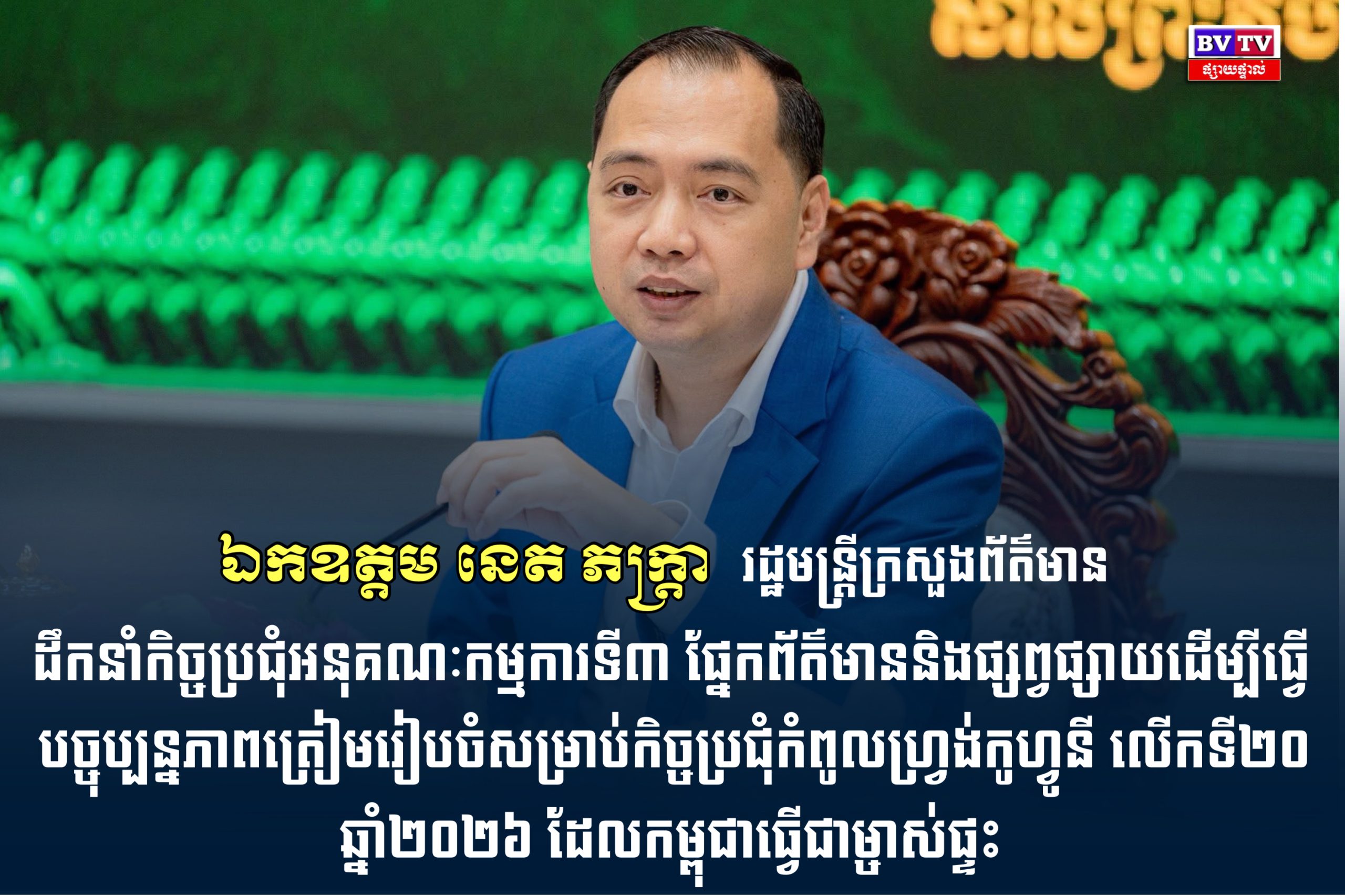 ដឹកនាំកិច្ចប្រជុំអនុគណៈកម្មការទី៣ ផ្នែកព័ត៌មាននិងផ្សព្វផ្សាយដើម្បីធ្វើបច្ចុប្បន្នភាពត្រៀមរៀបចំសម្រាប់កិច្ចប្រជុំកំពូលហ្រ្វង់កូហ្វូនី លើកទី២០ ឆ្នាំ២០២៦ ដែលកម្ពុជាធ្វើជាម្ចាស់ផ្ទះ។ ទីស្តីការក្រសួងព័ត៌មាន, ថ្ងៃទី២៧ ខែវិច្ឆិកា ឆ្នាំ២០២៥