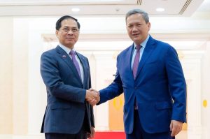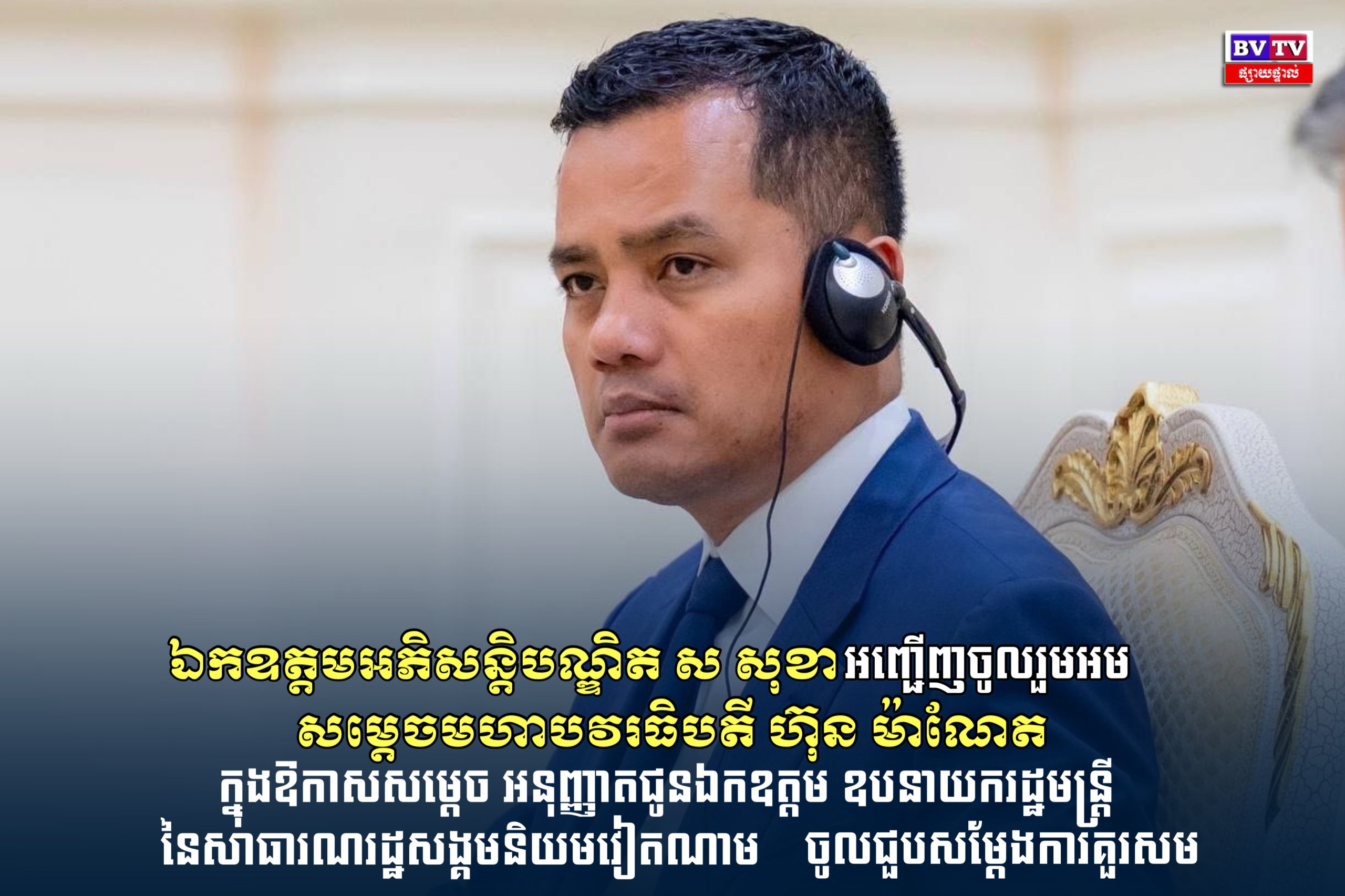 រសៀលថ្ងៃសុក្រ ទី២៨ ខែវិច្ឆិកា ឆ្នាំ២០២៥ នេះ ឯកឧត្តមអភិសន្តិបណ្ឌិត ស សុខា ឧបនាយករដ្ឋមន្ត្រី រដ្ឋមន្ត្រីក្រសួងមហាផ្ទៃ បានអញ្ជើញចូលរួមអមសម្តេចមហាបវរធិបតី ហ៊ុន ម៉ាណែត នាយករដ្ឋមន្ត្រី នៃព្រះរាជាណាចក្រកម្ពុជា ក្នុងឱកាសសម្តេច អនុញ្ញាតជូនឯកឧត្តម ប៊ួយ ថាញ់សឺន (Bui Thanh Son) ឧបនាយករដ្ឋមន្ត្រី នៃសាធារណរដ្ឋសង្គមនិយមវៀតណាម និងគណៈប្រតិភូ ចូលជួបសម្តែងការគួរសម នៅវិមានសន្តិភាព រាជធានីភ្នំពេញ។