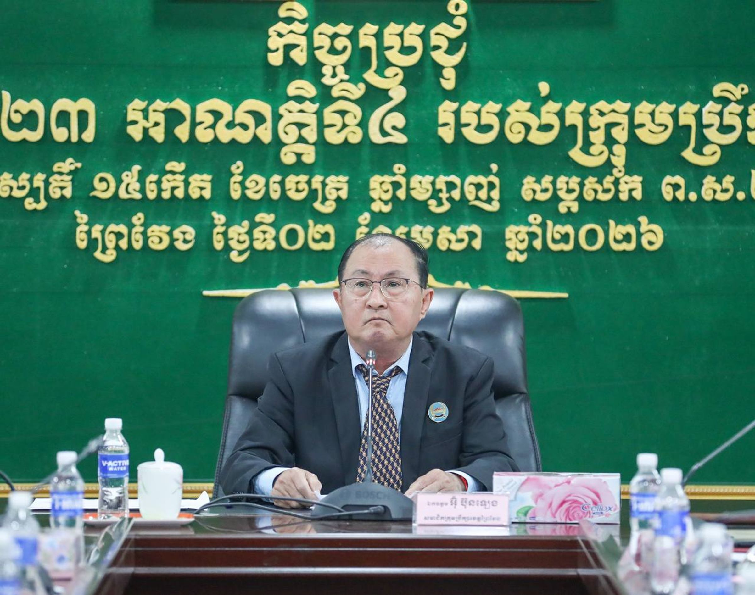 ខេត្តព្រៃវែង៖ ព្រឹកថ្ងៃទី២ ខែមេសា ឆ្នាំ២០២៦ ឯកឧត្តម អ៊ុំ ប៊ុនឡេង សមាជិកក្រុមប្រឹក្សាខេត្ត តំណាងដ៏ខ្ពង់ខ្ពស់ ឯកឧត្ដម ស្បោង សារ៉ាត ប្រធានក្រុមប្រឹក្សាខេត្ត និងឯកឧត្តម ហុី ធួក អភិបាលរង នៃគណៈអភិបាលខេត្ត តំណាងដ៏ខ្ពង់ខ្ពស់ ឯកឧត្តម សួន សុម៉ាលីន អភិបាលនៃគណៈអភិបាលខេត្ត បានអញ្ជើញដឹកនាំកិច្ចប្រជុំសាមញ្ញលើកទី២៣ អាណត្តិទី៤ របស់ក្រុមប្រឹក្សាខេត្តព្រៃវែង ដែលប្រព្រឹត្តទៅនៅសាលប្រជុំ «C» សាលាខេត្តព្រៃវែង។