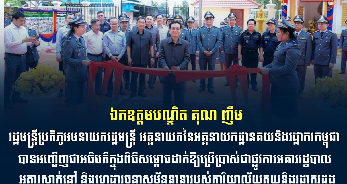 ឯកឧត្តមបណ្ឌិត គុណ ញឹម រដ្ឋមន្ត្រីប្រតិភូអមនាយករដ្ឋមន្ត្រី អគ្គនាយកនៃអគ្គនាយកដ្ឋានគយនិងរដ្ឋាករកម្ពុជា បានអញ្ជើញជាអធិបតីក្នុងពិធីសម្ពោធដាក់ឱ្យប្រើប្រាស់ជាផ្លូវការអគាររដ្ឋបាល អគារស្នាក់នៅ និងហេដ្ឋារចនាសម្ព័ន្ធនានារបស់ការិយាល័យគយនិងរដ្ឋាករដូង