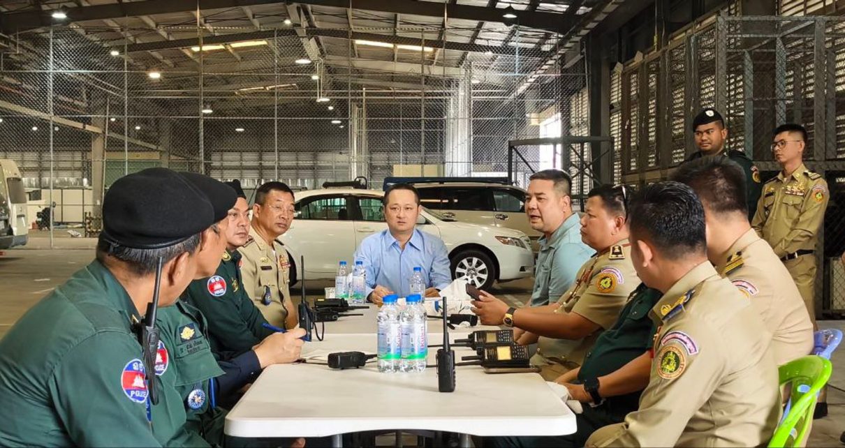 ឯកឧត្ដម ឧត្តមសេនីយ៍ ឯក សុខ វាសនា ចុះត្រួតពិនិត្យទីតាំងឃ្លាំង Cargo អាកាសយានដ្ឋានអន្តរជាតិភ្នំពេញចាស់ ដើម្បីចុះសួរសុខទុក្ខ លើកទឹកចិត្ត ដល់កងកម្លាំងប្រចាំការ