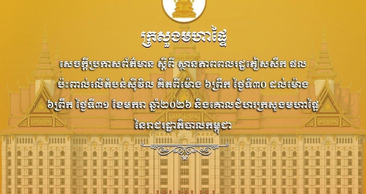 [English Below] ក្រសួងមហាផ្ទៃ នៃរាជរដ្ឋាភិបាលកម្ពុជា សូមជម្រាបជូនសាធារណជនជាតិ និងអន្តរជាតិជ្រាបថា ចាប់ពីតាំងពីបទឈប់បាញ់រវាងកម្ពុជា និងថៃ ចូលជាធរមាន កាលពីថ្ងៃទី២៧ ខែធ្នូ ឆ្នាំ២០២៥មក ភាគីទាំងសងខាងពុំបានផ្ទុះអាវុធដាក់គ្នានោះឡើយ។ យ៉ាងណាក៏ដោយក្នុងរយៈពេលនេះ កម្ពុជាបានតាមដាន និងកត់ត្រាទុកជាបន្តបន្ទាប់ នូវសកម្មភាពមិនស្មោះត្រង់មួយចំនួនរបស់ភាគីថៃ។ The Ministry of Interior of the Royal Government of Cambodia wishes to inform the national and international community that, since the ceasefire between Cambodia and Thailand came into effect on 27 December 2025, both sides have refrained from […]