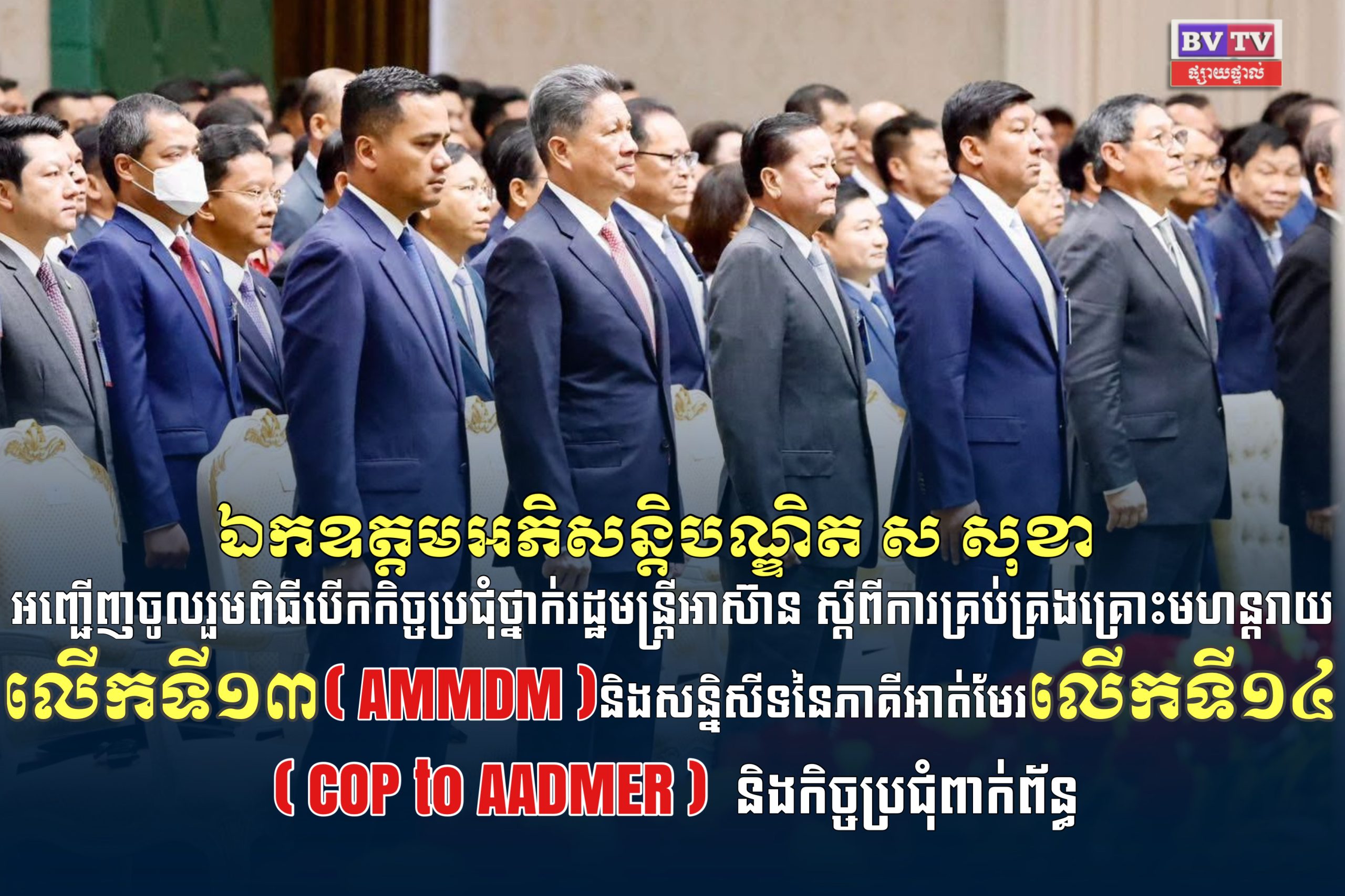 នៅព្រឹកថ្ងៃទី១៦ ខែតុលា ឆ្នាំ២០២៥ នេះ ឯកឧត្តមអភិសន្តិបណ្ឌិត ស សុខា ឧបនាយករដ្ឋមន្ត្រី រដ្ឋមន្ត្រីក្រសួងមហាផ្ទៃ បានអញ្ជើញចូលរួមពិធីបើកកិច្ចប្រជុំថ្នាក់រដ្ឋមន្ត្រីអាស៊ាន ស្តីពីការគ្រប់គ្រងគ្រោះមហន្តរាយ លើកទី១៣ (AMMDM) និងសន្និសីទនៃភាគីអាត់មែរ លើកទី១៤ (COP to AADMER) និងកិច្ចប្រជុំពាក់ព័ន្ធ ក្រោមអធិបតីភាពដ៏ខ្ពង់ខ្ពស់សម្តេចមហាបវរធិបតី ហ៊ុន ម៉ាណែត នាយករដ្ឋមន្ត្រី នៃព្រះរាជាណាចក្រកម្ពុជា នៅវិមានសន្តិភាព រាជធានីភ្នំពេញ។