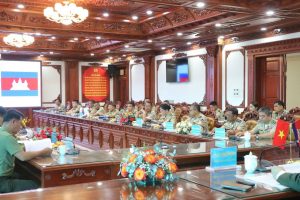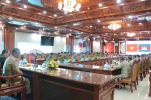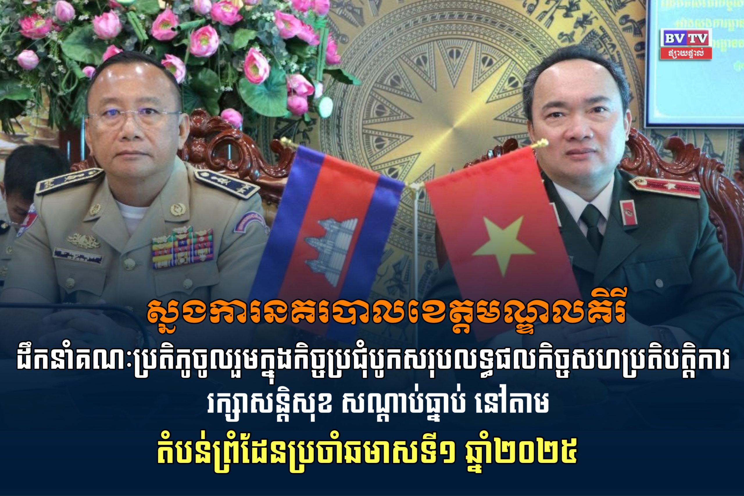 ខេត្តមណ្ឌលគិរី៖ នៅថ្ងៃសុក្រ ទី១៧ ខែតុលា ឆ្នាំ២០២៥ គណៈប្រតិភូនៃស្នង ការដ្ឋាននគរបាលខេត្តមណ្ឌលគិរី ដឹកនាំដោយលោកឧត្តមសេនីយ៍ទោ ឡោ សុខា ស្នងការនគរបាលខេត្តមណ្ឌលគិរី ព្រមទាំងលោកឧត្តមសេនីយ៍ត្រី ឆាយ សុខា អនុប្រធាននាយកដ្ឋាន ទទួលបន្ទុកកិច្ចការព្រំដែនកម្ពុជា-វៀតណាម នៃអគ្គស្នងការដ្ឋាននគរបាលជាតិ និងប្រតិភូអមដំណើរ បានអញ្ជើញចូលរួមក្នុងកិច្ចប្រ ជុំកិច្ចសហប្រតិបត្តិការ រក្សាសន្តិសុខ សណ្ដាប់ធ្នាប់នៅតាមតំបន់ព្រំដែនប្រចាំឆមាសទី១ ឆ្នាំ២០២៥ និងលើកទិសដៅកិច្ចសហប្រតិបត្តិការឆមាសទី២ឆ្នាំ២០២៥ រវាងស្នងការដ្ឋាននគរបាលខេត្តមណ្ឌលគិរី ជាមួយស្នង ការដ្ឋាននគរបាលខេត្តឡឹមដុង សាធារណរដ្ឋសង្គមនិយមវៀតណាម។