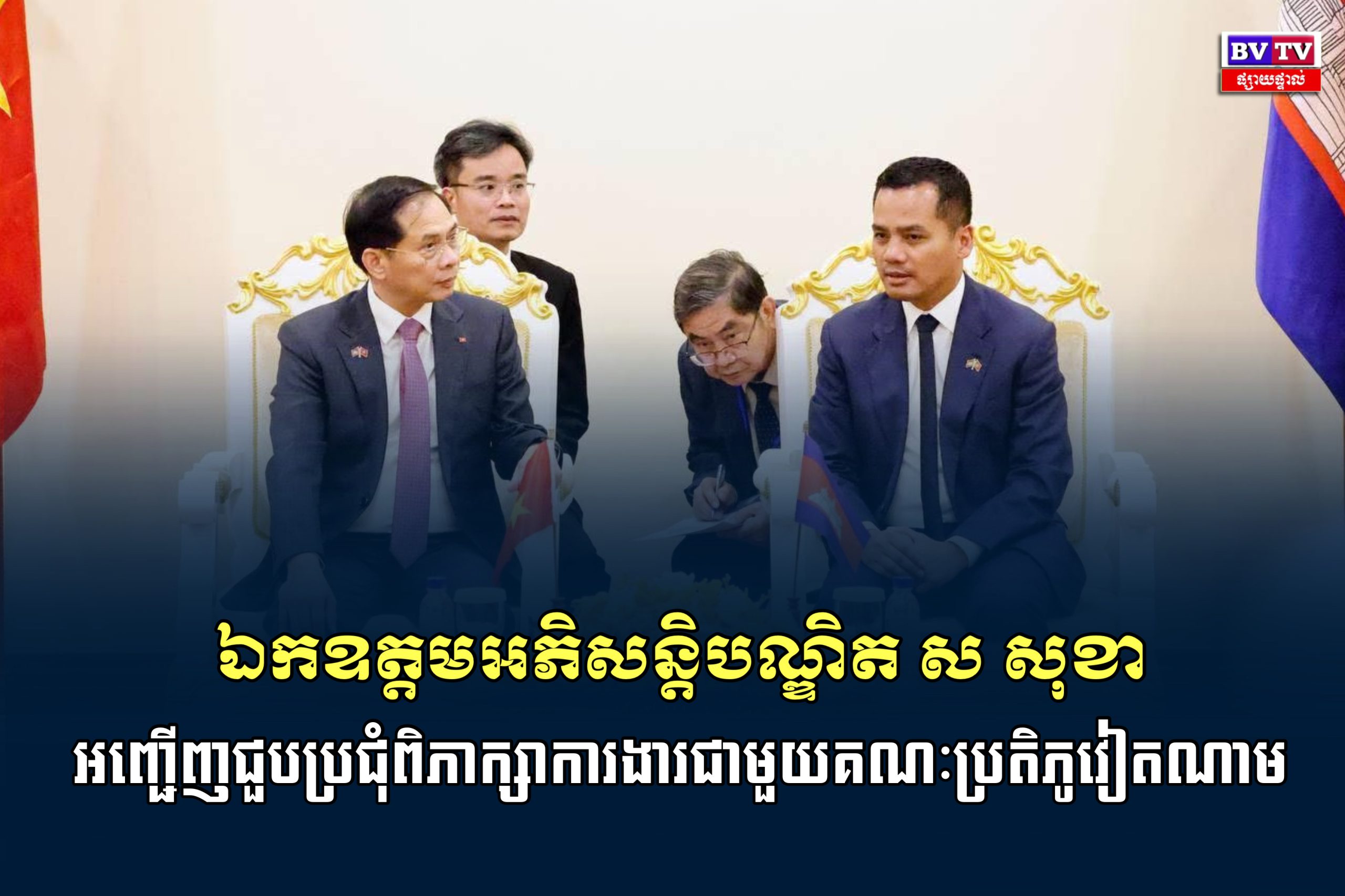 រសៀលថ្ងៃសុក្រ ទី២៨ ខែវិច្ឆិកា ឆ្នាំ២០២៥ នេះ ឯកឧត្តមអភិសន្តិបណ្ឌិត ស សុខា ឧបនាយករដ្ឋមន្ត្រី រដ្ឋមន្ត្រីក្រសួងមហាផ្ទៃ និងជាប្រធានគណៈប្រតិភូ នៃព្រះរាជាណាចក្រកម្ពុជា បានអញ្ជើញជួបប្រជុំពិភាក្សាការងារជាមួយឯកឧត្តម ប៊ួយ ថាញ់សឺន (Bui Thanh Son) ឧបនាយករដ្ឋមន្ត្រី នៃសាធារណរដ្ឋសង្គមនិយមវៀតណាម និងគណៈប្រតិភូ នៅសណ្ឋាគារ រ៉េស៊ីដង់ សុខាភ្នំពេញ រាជធានីភ្នំពេញ។