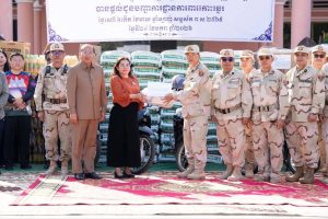 ក្នុងឱកាសដ៏ថ្លៃថ្លានេះ ឯកឧត្តមអភិបាលខេត្ត និងលោកជំទាវ បាននាំយកនូវគ្រឿងឧបភោគបរិភោគ សម្ភារប្រើប្រាស់ និងថវិកា ដែលជាអំណោយរបស់រដ្ឋបាលខេត្ត និងសាខាសមាគមនារីខេត្ត ដើម្បីចូលរួមបន្ថែម ជាមួយរាជរដ្ឋាភិបាល ក្នុងការជួយសម្រួលដល់ជីវភាពរស់នៅ និងការបំពេញភារកិច្ចការពារបូរណភាពទឹកដីរបស់កងកម្លាំង៕