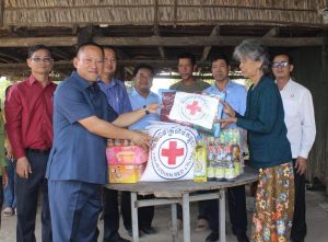 -សូមបញ្ជាក់ថាអំណោយដែលបានប្រគល់ជូនរួមមាន៖ អង្ករ២៥គីឡូក្រាម ត្រីខកំប៉ុង១យួរ មី១កេស ប្រេងឆា១លីត្រ នំ១ប្រអប់ ទឹកត្រី៣ដប ទឹកស៊ីអ៊ីវ៣ដប កន្ទេល១ មុង ១ ភួយ១ សារុង១ ក្រម៉ា១ និងថវិកាមួយចំនួនទៀត៕