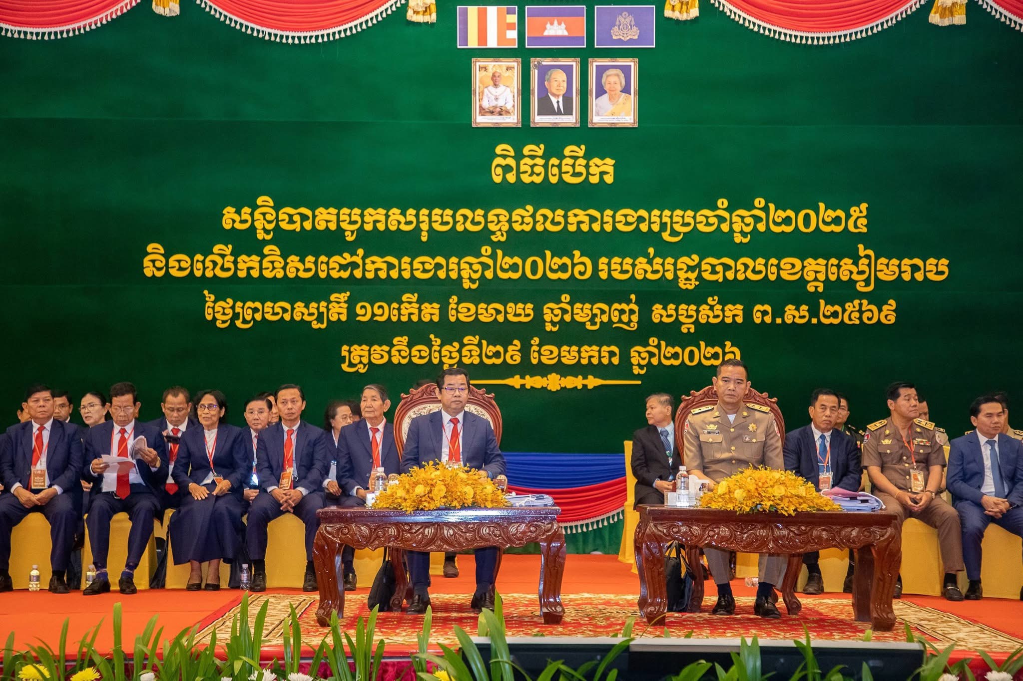 ខេត្តសៀមរាប៖ ឯកឧត្តម លី សំរិទ្ធ ប្រធានក្រុមប្រឹក្សាខេត្ត និងឯកឧត្តម ប្រាក់ សោភ័ណ អភិបាល នៃគណៈអភិបាលខេត្តសៀមរាប បានបន្តដឹកនាំរដ្ឋបាលក្រុង ស្រុក និងមន្ទីរ អង្គភាពធ្វេីបទអន្តរាគមន៍នៃអង្គសន្និបាតបូកសរុបលទ្ធផលការងារប្រចាំឆ្នាំ២០២៥ ដោយយកចិត្តទុកដាក់លើការងារសន្តិសុខសណ្តាប់ធ្នាប់ ការផ្តល់សេវាសាធារណៈ ជំរុញកំណើនសេដ្ឋកិច្ច ការដោះស្រាយសេវាសង្គម និងសង្គមកិច្ច ដេីម្បីប្រមូលធាតុចូលសម្រាប់ជាយន្តការកំណត់ទិសដៅការងារឆ្នាំ២០២៦ របស់រដ្ឋបាលខេត្តសៀមរាប។