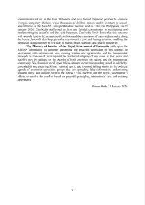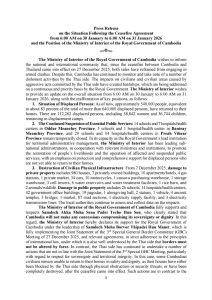The Ministry of Interior of the Royal Government of Cambodia wishes to inform the national and international community that, since the ceasefire between Cambodia and Thailand came into effect on 27 December 2025, both sides have refrained from engaging in armed clashes. Despite this, Cambodia has continued to monitor and take note of a number of dishonest activities by the Thai side.