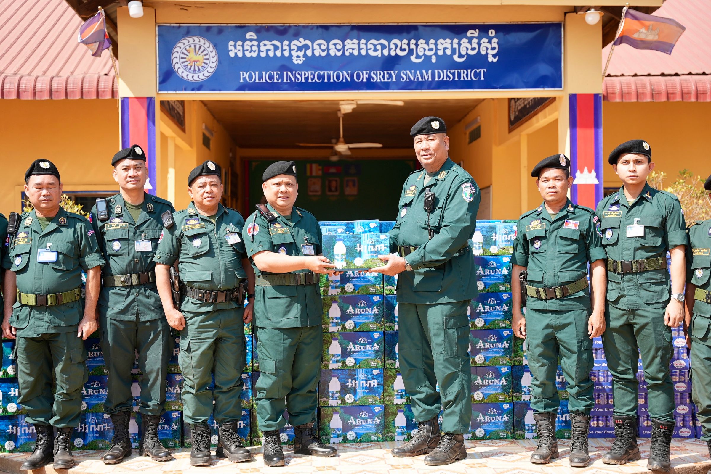 សៀមរាប ៖ នៅព្រឹកថ្ងៃពុធ ទី១៨ ខែកុម្ភៈ ឆ្នាំ២០២៦ នៅអធិការដ្ឋាននគរបាលស្រុកស្រីស្នំ លោកឧត្តមសេនីយ៍ទោ ហួត សុធី ស្នងការ នៃស្នងការដ្ឋាននគរបាលខេត្តសៀមរាប បានអញ្ជើញដឹកនាំសហការី នាំយកនូវគ្រឿងឧបភោគ បរិភោគមួយចំនួនរួមមាន ទឹកបរិសុទ្ធ អារុណា ចំនួន ៣០០កេស ភេសជ្ជៈ បាកាស ៥០កេស និងនំមួយចំនួន ប្រគល់ ជូន ដល់កងកម្លាំងវរសេនាតូចនគរបាលការពារព្រំដែនគោកលេខ ៩០៥ និង ៧០២ ជួរមុខ នៅទិស ប្រាសាទ តាក្របី ប្រាសាទ ខ្នា ថ្មរដូន និង ប្រាសាទ តាមាន់ធំ ខេត្ត ឧត្តរមានជ័យ ដែលជាអំណោយ ឯកឧត្ដម ឧត្ដមសេនីយ៍ឯក ឌី វិជ្ជា អគ្គស្នងការរងនគរបាលជាតិ និង លោកជំទាវ ហ៊ុន ម៉ាណា ។