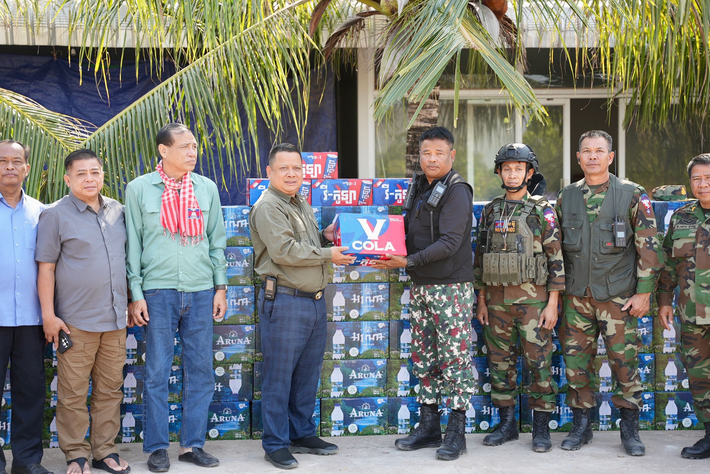 សៀមរាប ៖ នៅព្រឹកថ្ងៃសៅរ៍ ទី២១ ខែកុម្ភៈ ឆ្នាំ២០២៦ លោកឧត្តមសេនីយ៍ទោ ហួត សុធី ស្នងការ នៃស្នងការដ្ឋាននគរបាលខេត្តសៀមរាប បានអញ្ជើញដឹកនាំសហការី នាំយកនូវគ្រឿងឧបភោគ បរិភោគ និងសម្ភារៈប្រើប្រាស់មួយចំនួនរួមមាន អង្ករ ៥០ការុង ទឹកបរិសុទ្ធចំនួន ៣០០កេស ភេសជ្ជៈ ០៥កេស ធុងទឹកចំនួន១០ ចំណុះ ២០០០លីត្រ ដុំសម្រាប់ប្រើប្រាស់អ៊ីនធឺណិតចំនួន០១ និងវិទ្យុទាក់ទងចំនួន០១ ប្រគល់ជូនដល់កងទ័ពជួរមុខទិសប្រាសាទព្រះវិហារ ដែល ជា អំណោយដ៏ថ្លៃថ្លារបស់ ឯកឧត្ដម ឧត្ដមសេនីយ៍ ឯក ឌី វិជ្ជា អគ្គស្នងការរងនគរបាលជាតិ និង លោកជំទាវ ហ៊ុន ម៉ាណា ៕