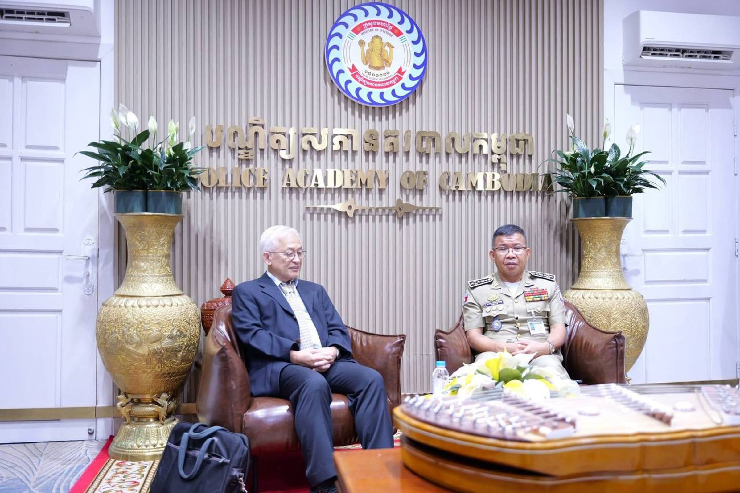 នៅព្រឹកថ្ងៃចន្ទទី២៣ ខែកុម្ភៈ ឆ្នាំ២០២៦ ឯកឧត្តម នាយឧត្តមសេនីយ៍ សាស្ត្រាចារ្យ ឯក មនោសែន ប្រធានបណ្ឌិត្យសភានគរបាលកម្ពុជា បានអញ្ជើញស្វាគមន៍និងពិភាក្សាការងារជាមួយ ឯកឧត្តមបណ្ឌិត ពេញ ឡាមុត ទីប្រឹក្សាក្រសួងមហាផ្ទៃ ដែលឯកឧត្តមបណ្ឌិត បានអញ្ជើញជាវាគ្មិន ដើម្បីចែករំលែកចំណេះដឹងនិងបទពិសោធតាមរយៈបទអន្តរាគមន៍មួយ ស្តីពី «ថាមពលកកើតឡើងវិញនិងថាមពលនុយក្លេអ៊ែ» ដល់ថ្នាក់ដឹកនាំ សាស្ត្រាចារ្យ និងគ្រូនគរបាលជាតិ ព្រមទាំងមន្ត្រីមួយចំនួននៃបណ្ឌិត្យសភានគរបាលកម្ពុជា។