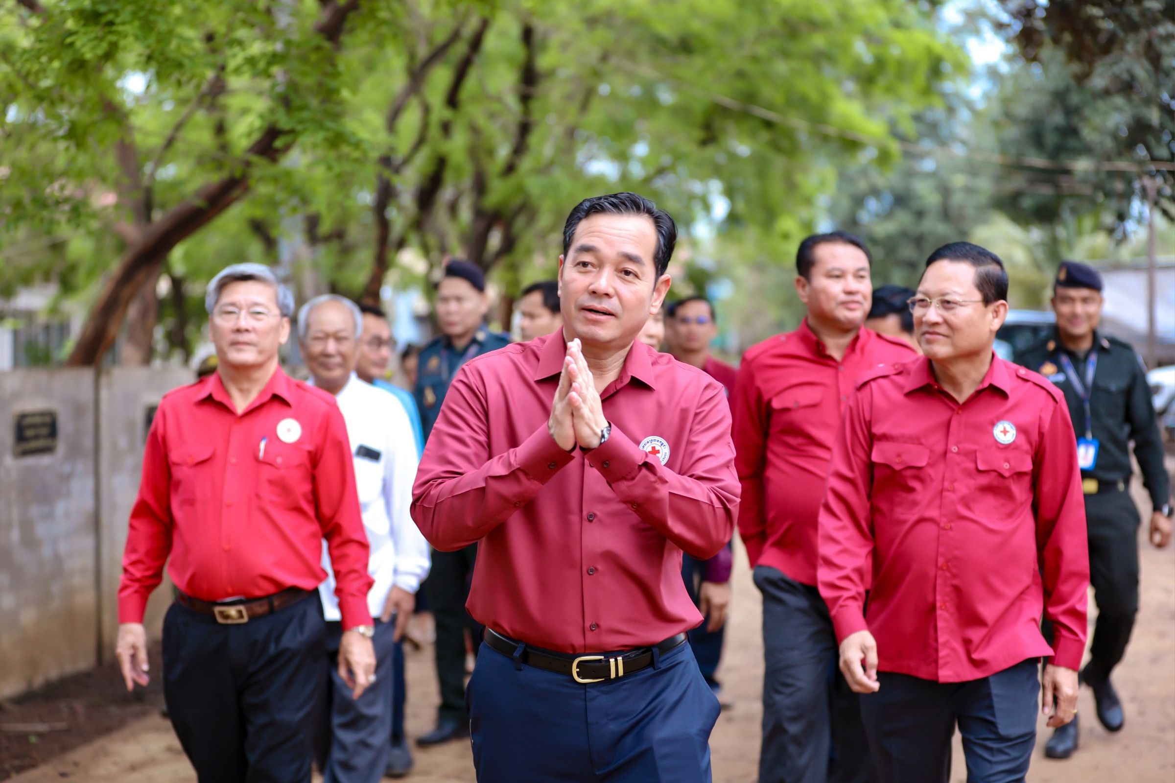 ឯកឧត្តមប្រធានគណៈកម្មាធិការសាខា បាននាំយកនូវប្រសាសន៍ ផ្ដាំផ្ញើសួរសុខទុក្ខដោយក្តីអាណិតអាសូរ ពីសំណាក់ ឯកឧត្តម សន្តិបណ្ឌិត នេត សាវឿន ប្រធានកិត្តិយសសាខា ពិសេសពីសំណាក់ សម្ដេចកិត្តិព្រឹទ្ធបណ្ឌិត ប៊ុន រ៉ានី ហ៊ុនសែន ប្រធានកាកបាទក្រហមកម្ពុជា ដែលជានិច្ចកាល សម្តេច លោកតែងតែយកចិត្តទុកដាក់គិតគូរចំពោះសុខទុក្ខប្រជាពលរដ្ឋរងគ្រោះ និងងាយរងគ្រោះ ដោយមិនប្រកាន់វណ្ណៈ ជំនឿសាសនា ឬនិន្នាការនយោបាយអ្វីឡើយ ហើយទោះបី សម្តេច មិនបានអញ្ជើញមកផ្ទាល់ ក៏លោក តែងបានចាត់តំណាង ចុះអន្តរាគមន៍ ផ្តល់ជំនួយសង្រ្គោះ ជួយសម្រាលទុក្ខលំបាក ទាន់ពេលវេលា តាមទិសស្លោក “ ទីណាមានទុក្ខលំបាក ទីនោះមានកាកបាទក្រហមកម្ពុជា “។