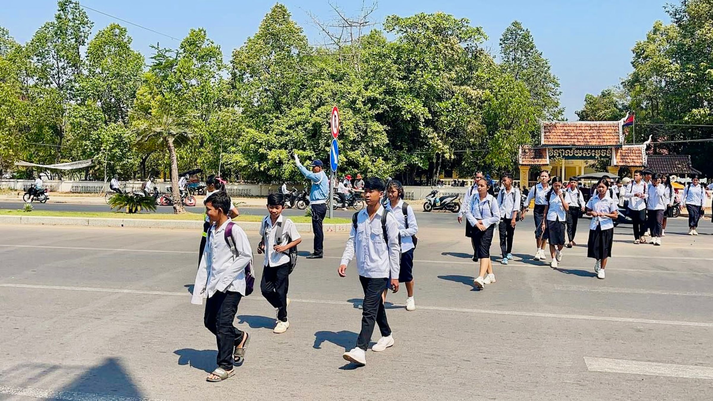 សៀមរាប ៖ ថ្ងៃអង្គារ ទី១០ ខែមីនា ឆ្នាំ២០២៦ ដោយអនុវត្តតាមអនុសាសន៍ដ៏ខ្ពង់ខ្ពស់របស់ ឯកឧត្តម នាយឧត្តមសេនីយ៍ ស ថេត អគ្គស្នងការនគរបាលជាតិ និងការចង្អុលដឹកនាំតម្រង់ទិសដោយផ្ទាល់របស់ លោកឧត្តមសេនីយ៍ទោ ហួត សុធី ស្នងការ នៃស្នងការដ្ឋាននគរបាលខេត្តសៀមរាប កម្លាំងការិយាល័យនគរបាលចរាចរណ៍ផ្លូវគោក និងកម្លាំងតាមបណ្តាអធិការដ្ឋាននគរបាលក្រុង-ស្រុក បានចុះសម្រួលចរាចរណ៍ ជូនលោកគ្រូ អ្នកគ្រូ និងសិស្សានុសិស្សនៅតាមសាលារៀនបានជាប់ជាប្រចាំ៕
