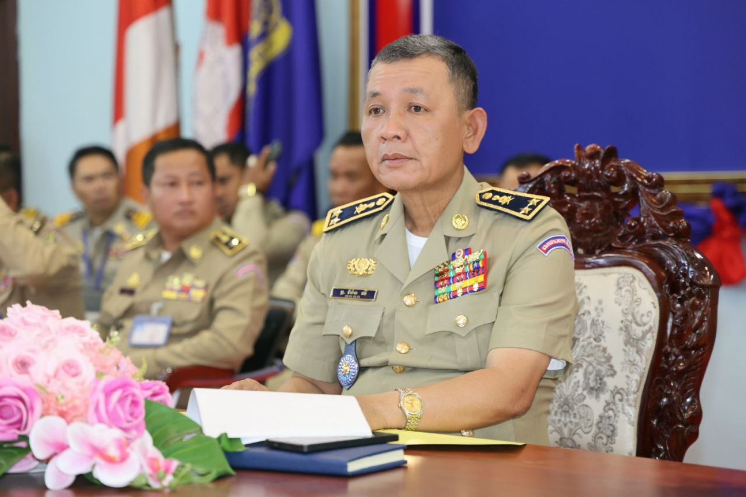 តាកែវ៖ នារសៀលថ្ងៃទី៧ ខែមេសា ឆ្នាំ២០២៦ លោកឧត្តមសេនីយ៍ទោ ម៉ែន លី ស្នងការ នៃស្នងការដ្ឋាននគរបាលខេត្តតាកែវ បានអញ្ជើញដឹកនាំកិច្ចប្រជុំផែនការ ការពារថ្នាក់ដឹកនាំជាន់ខ្ពស់រាជរដ្ឋាភិបាល នៃព្រះរាជាណាចក្រកម្ពុជា និងផ្សព្វផ្សាយផែនការ រៀបចំការពារ សន្តិសុខ សណ្តាប់ធ្នាប់ និងសុវត្ថិភាព ជូនបងប្អូនប្រជាពលរដ្ឋ ក្នុងឱកាសនៃពិធីបុណ្យចូលឆ្នាំថ្មី ប្រពៃណីជាតិខ្មែរ ដែលនឹងខិតជិតមកដល់នៅពេលខាងមុខនេះ។