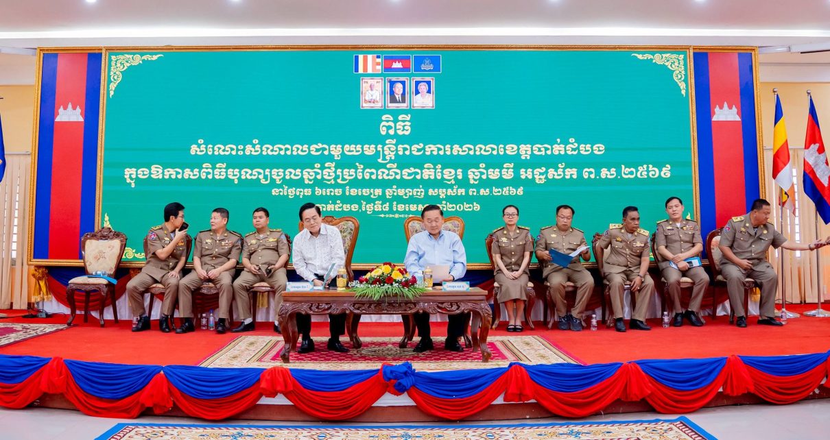 ខេត្តបាត់ដំបង៖ ឯកឧត្តម អ៊ុយ រី ប្រធានក្រុមប្រឹក្សាខេត្ត និងឯកឧត្តម សុខ លូ អភិបាលនៃគណៈអភិបាលខេត្តបាត់ដំបង បានអញ្ជើញជាអធិបតីក្នុងពិធីសំណេះសំណាលជាមួយមន្រ្តីរាជការសាលាខេត្តបាត់ដំបងក្នុងឱកាសពិធីបុណ្យចូលឆ្នាំថ្មីប្រពៃណីជាតិខ្មែរ។ពិធីសំណេះសំណាលនេះធ្វើឡើងនៅថ្ងៃទី៨ ខែមេសា ឆ្នាំ២០២៦ នៅសាលប្រជុំសាលាខេត្តបាត់ដំបង។